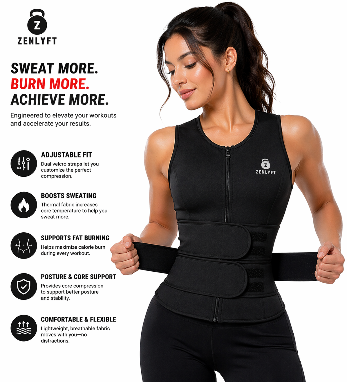 Transform your workouts with the Zenlyft Sweat Belt—designed to increase core heat, boost sweat, and accelerate calorie burn.